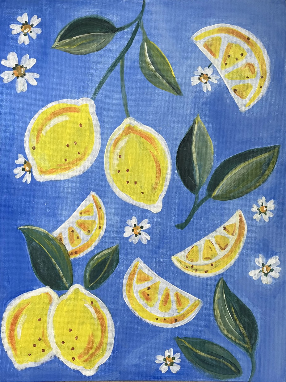 Join us to paint this lemon picture on; Friday, April 10th from 6:30pm – 8:30pm Sign up directly on the company website. Must register by April 5th https://paintthetown.com/shop/paint-and-sip-02282026/
